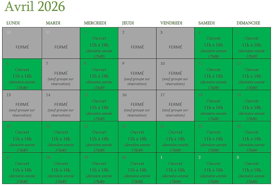 de 11h à 18h (dernière entrée 17h00)